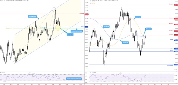 本周的技术证据在很大程度上有利于买家,并受到以下因素的支持,长期趋势在月度范围内向上,并且每日时间框架的趋势也显示出向上反转的迹象,此外还有RSI指标目前月线和日线时间框架都对买家有利,日线也高于50.00。