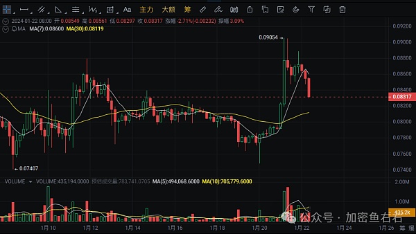 之前给大家推荐的DOGE和XRP,目前来看DOGE已经开始发力,这个品种拉升起来也是相当暴利的,所以,对于其拉升的目标位,我们可以先看前高附近,然后再参考之前的高点0.15附近去获利了结,MEME系列和粉丝系列往往都是行情**期迎来爆发,他们疯狂过后,大盘还会进一步下跌,所以,当前的行情还是以保守参与为主,现货布局为主,年前不要上杠杆了,赚多赚少,亏多亏少心态都会平和很多,好好过年才是我们一年奋斗下来,最应该把我的东西。