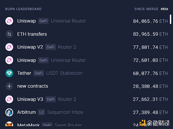 Gas 消耗主要由 Uniswap、ETH 转账、Tether/USDC、L2s、Metam4sk 和 OpenSea/Blur 驱动。