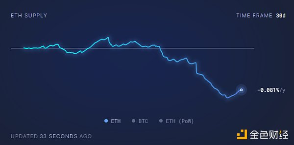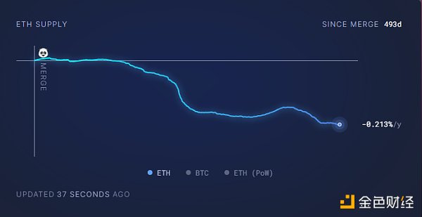 ETH 在过去 30 天以及过去 493 天(自合并以来)一直处于通缩状态。