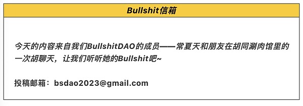 Bullshit DAO是一个去严肃化的媒体DAO,我们崇尚随心所欲的自我表达,以发现创造更多的“屁话”为使命,我们致力于挖掘和记录多元的Web3想法,成就“**”人生。