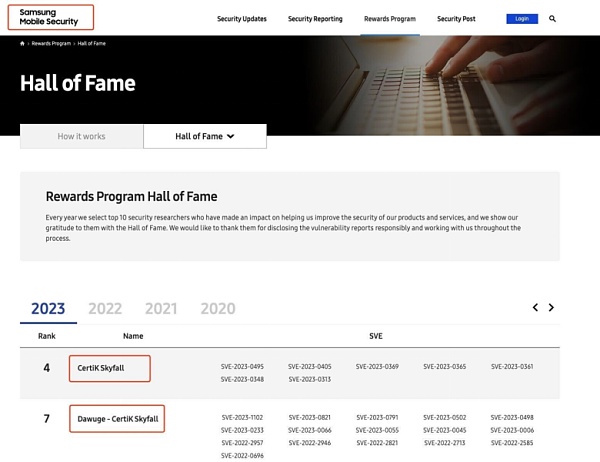 三星区块链密钥库(Samsung Blockchain Keystore)是三星设备私钥管理的重要平台。CertiK团队发现了该平台中的七个漏洞,其中四个被三星确认为关键级漏洞,另外三个为**。 这些漏洞一旦被利用,将会造成任意代码执行(ACE)和未经授权的敏感数据泄漏等严重后果。 三星高度重视CertiK团队的发现,在漏洞发现后,三星迅速部署了安全补丁,并加入了重要的边界检查和保护机制来预防潜在风险。另一方面,此前刚刚获得荣耀安全奖励计划三等奖的CertiK安全专家Dawuge也位列此次名人堂第七位,显示了CertiK极强的集体和个人专业实力。