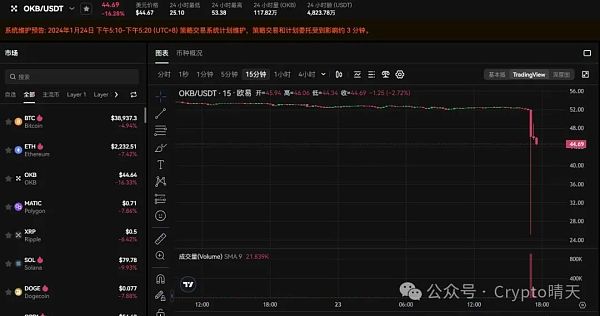 昨天下午$OKB突然扎针,一度探底达到$25,暴跌百分之50,怎么一回事呢?