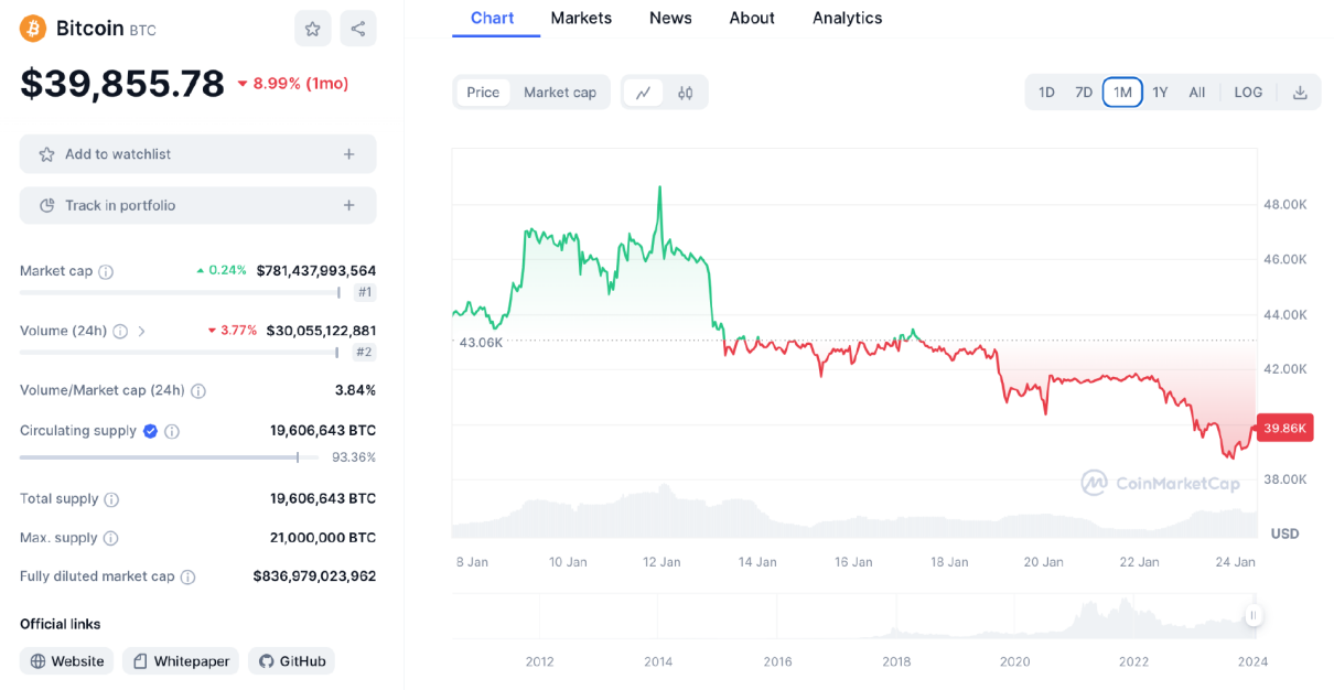 之所以行情持续下跌,主要是因为现货比特币 ETF 这个史诗级的利好落地,利好落地是利空,大量获利盘要出货,而且也要过春节了,大家要卖币换钱。