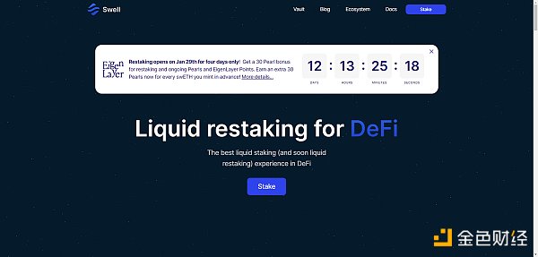 Swell 是老牌的 LSD 协议了,不久前宣布要踏足 Liquid Restaking 领域,属于 Liquid Native Restaking 类型的产品。增加了再质押功能后,用户可以将 ETH 存入换出 rswETH,因此 Swell 将不再受 EigenLayer LST 额度限制。
