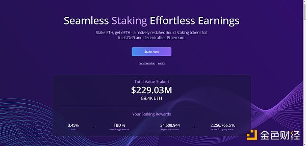 ether.fi 属于 Liquid Native Restaking 类型的产品,曾获得 BitMEX 创办人 Arthur Hayes 参投的 530 万美元种子轮融资,不同于 Lido,ether.fi 采用了一种去**化、非托管的方式来实现 ETH 的质押,并且宣布提供再质押服务,由于是原生 ETH 再质押,因此也不受到 EigenLayer LST 限额影响仍可以存入,而其抵押凭证** eETH (包装** weETH) 也是目前少数具有流动性的 LRT 抵押凭证**。
