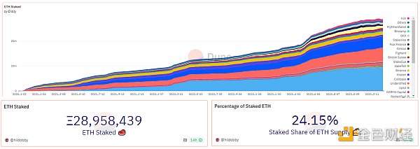 数据来源:https://dune.com/hildobby/eth2-staking再质押的风潮随着 EigenLayer 增加 LST 抵押额度后成为以太坊生态的焦点,EigenLayer 在短短一个月内,吸纳了 50 多万枚以太坊,TVL 超 16 亿美金,成为以太坊链上排名第 12 的**协议。