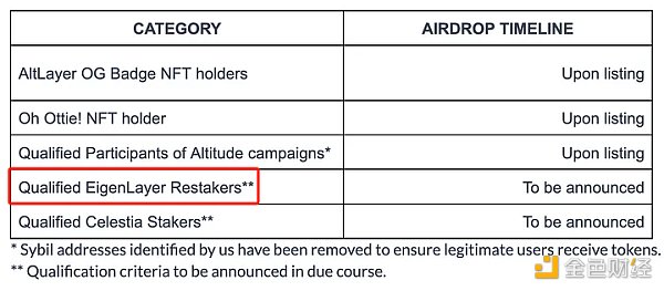 利用今天提到的项目参与再质押无疑是性价比**的选择,只要参与质押就可以一鱼双吃或三吃。需要注意的是最近 Altlayer 的空投规则中提到,会给 EigenLayer 质押者空投,但是质押到像 Kelp DAO、Renzo 这些协议中,能否被穿透认定为 EigenLayer 质押者,还是个未知数。