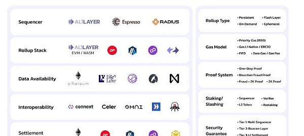 AltLayer是一种开放、去**化的Rollups协议,引入了**的Restaked Rollup理念。该协议支持多种Rollup堆栈,如OP Stack、Arbitrum Orbit、ZKStack、Polygon CDK等,并整合了共享排序服务(如Espresso和Radius)以及不同的DA层(如Celestia EigenLayer和Avail),还包含多个定制服务,覆盖Rollup堆栈的不同层次,为它们提供增强的安全性、去**化、互操作性和加密经济的快速确定性。