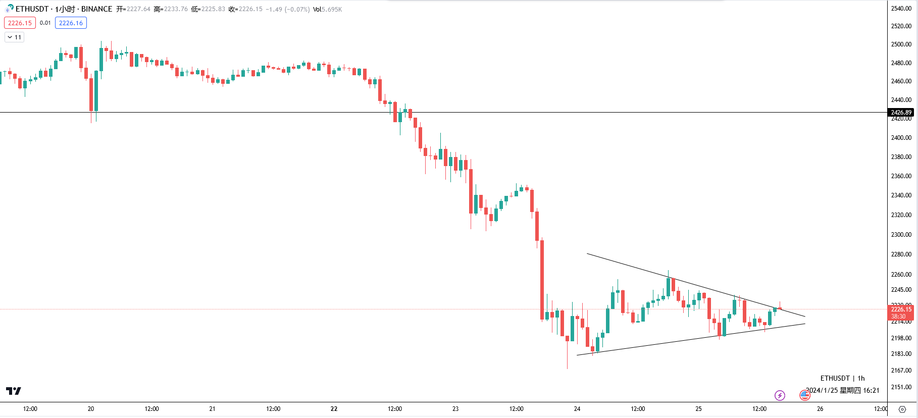 弱势跟随大饼。近期应该会保持震荡下行的走势。支撑位2180、2120,压力位2230、2340。