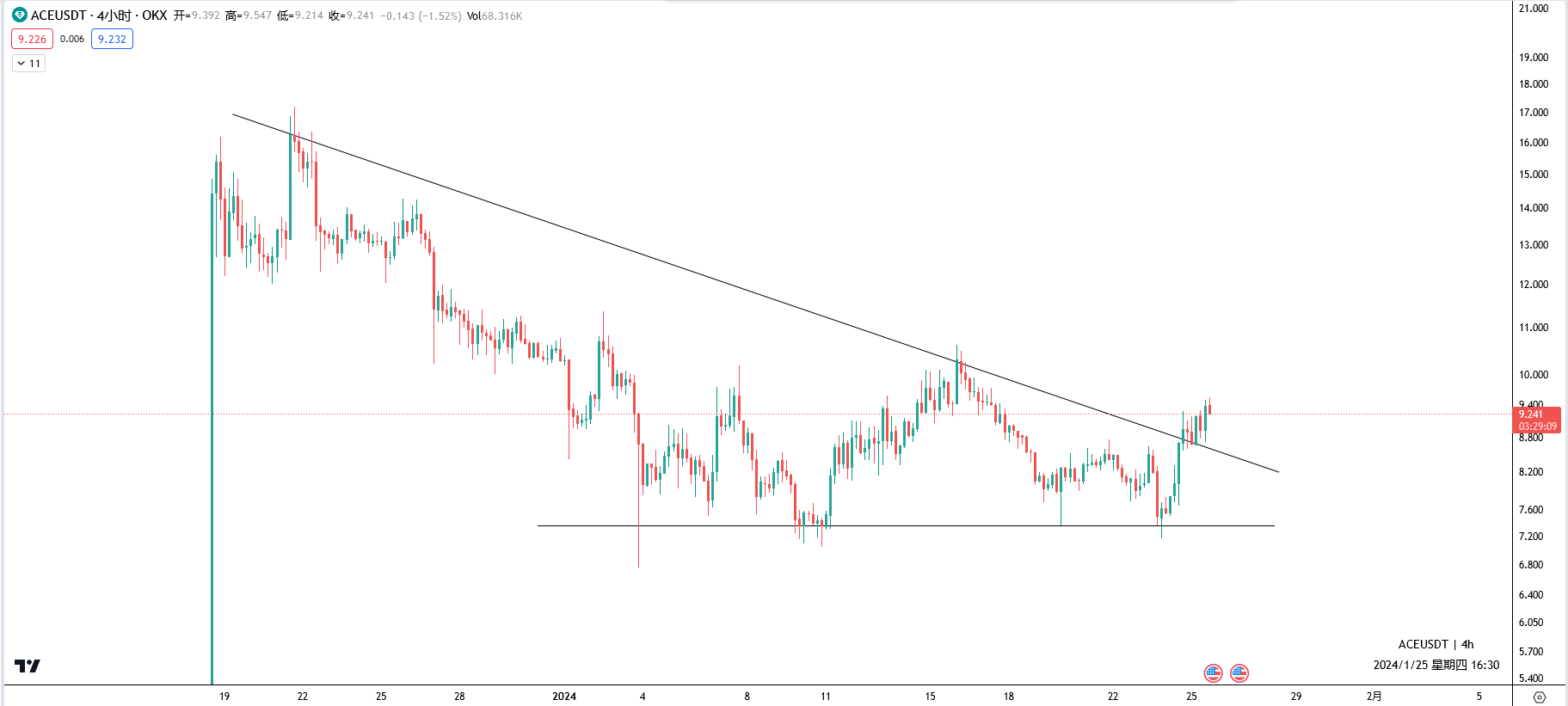 这个币当前合理市值应该在20亿-30亿美金这里,也就是0.2-0.3u。开盘看到低于0.2u可以适当参与,低于0.3u也可以入场一些。超过0.3u不太建议追高,等待机会。