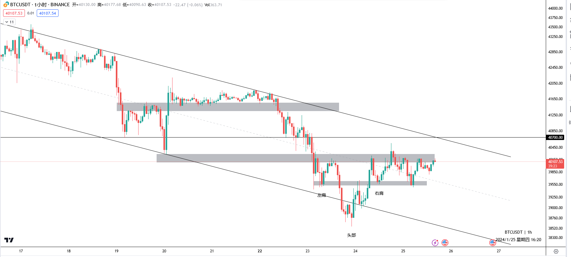 操作建议:中性偏弱。大饼接下来会在几周时间内横盘,消化来自灰度的抛压。然后在1~2月的时间内,反弹到46000左右构筑头肩顶的右肩。