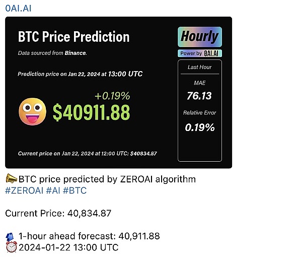 以下是 0AI.AI 对 #BTC 和 #ETH 做出的价格预测示例:
