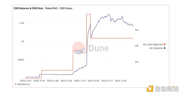 我**的猜测是,sDAI 对 Maker 生成的收益没有实际要求。Maker 只是控制 DAI 的借贷和借贷利率,以稳定 DAI 与美元的锚定。另一方面,抵押品被用于购买国库券。碰巧的是,DAI 的 5% 储蓄利率非常接近国库券利率。