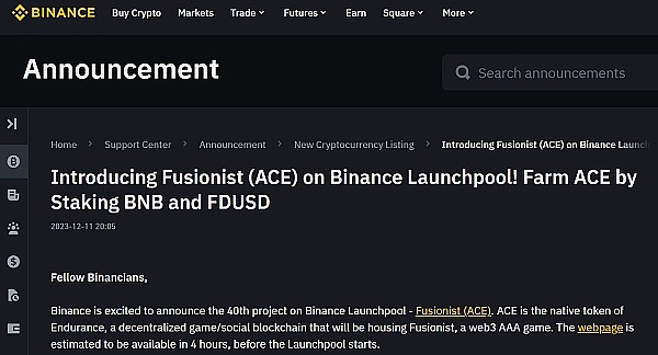 Fusionist将推出新游戏 其代币价格ACE随之大涨:买入时机已到?