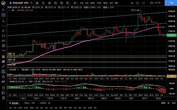 以太坊昨日白盘波动不大,晚间行情下跌至2171一线给到入场机会,随后开始反弹,走势如思路一致,恭喜跟上的朋友多单获利50点,目前币价在2221附近运行,四小时级别行情二次下探未破前低走出反弹但力度不大,高点逐步**,macd多头运行双线金叉,整体围绕ma7附近上下震荡,走势没什么变化以震荡为主,日线级别实体没能跌破ma90均线,有阴转阳向上反弹,关注2250突破情况,不破则会继续震荡下行,近期若有大回调可以低多布局,作为优质币种未来**不会差,思路建议回踩低多为主高空为辅,上方压制2250-2280,下方支撑2180-2150