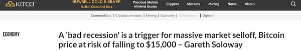 专家警告:“严重衰退”会引发大规模市场抛售比特币价格恐跌至1.5万美元