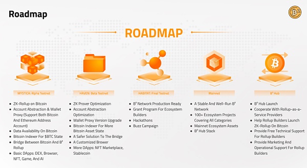 B² Network 将经历三次测试网阶段,不同测试网阶段针对不同的技术要求来测试运行。Alpha 版本测试网 Mystica 于去年 12 月 25 日正式对 C 端用户上线,用户可以通过参与官方奥德赛体验 Mystica。据悉,B² Network 已开启 beta 测试网 Haven,此版本测试网将支持更多第三方 DApp 对用户侧开放,用户可以在奥德赛中体验更多 DApps。