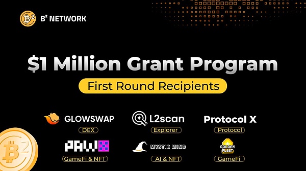 另外,B² Network 也致力于建设一个健康的生态。B² Network 此前曾发布百万美元 Grant 计划,并在上周公布了**批 Grant 计划资助的六个项目,分别为 GlowSwap、L2S can、Protocol X、PawX、Mystic Mind 和 Golden Fleet,并表示 Grant 申请长期对开发者开放。