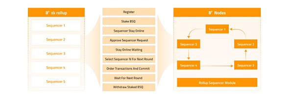 序列器选择器模块:实现了类似 DPoS 的机制,选择一组序列器为特定时期提供交易排序和打包服务。竞争成为序列器的个人或组织必须抵押**数量的** BSQ,并准备必要的硬件资源。用户可以将其** BSQ 委托给竞争序列器位置的候选者。运营序列器服务的候选者可以获得**比例的交易费和额外的** BSQ 奖励。