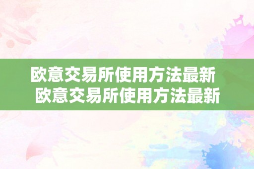 欧意交易所使用方法最新 欧意交易所使用方法最新
