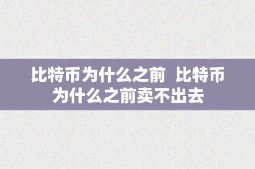 比特币为什么之前及比特币为什么之前卖不出去