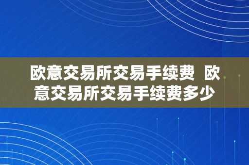 欧意交易所交易手续费 欧意交易所交易手续费多少