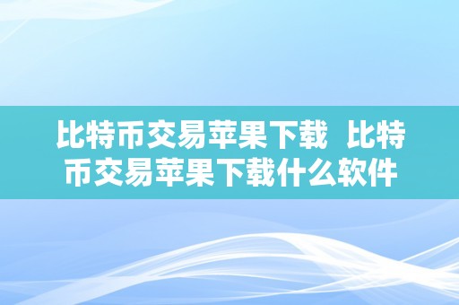 比特币交易苹果下载及比特币交易苹果下载什么软件