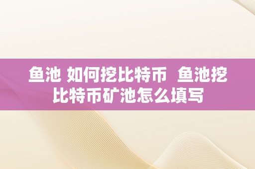 鱼池 如何挖比特币 鱼池挖比特币矿池怎么填写
