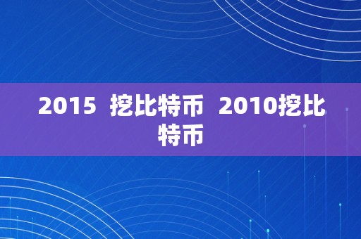 2015 挖比特币 2010挖比特币