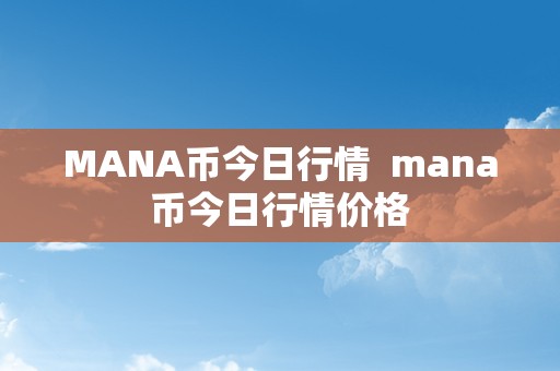MANA币今日行情及Mana币今日行情价格:详细分析和市场展望