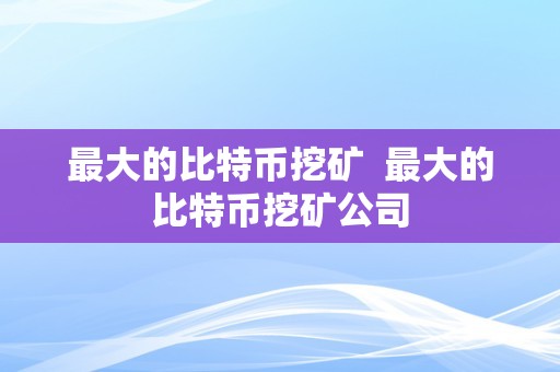 最大的比特币挖矿 最大的比特币挖矿公司