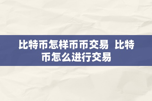 比特币币币交易及比特币交易详解:了解如何进行比特币交易