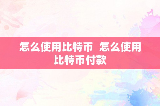 怎么使用比特币 怎么使用比特币付款