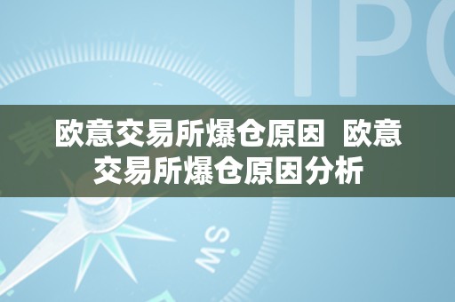 欧意交易所(Euroclear Italia)是意大利的一个金融交易所,提供证券交易、清算和结算服务,近年来,欧意交易所发生了一系列爆仓事件,引起了广泛的关注和讨论,本文将详细描述欧意交易所爆仓的原因,并进行分析。