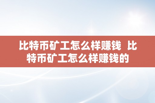 比特币矿工怎么样赚钱 比特币矿工怎么样赚钱的