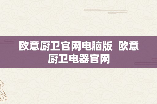 欧意厨卫官网电脑版是欧意厨卫品牌为用户提供的在线平台,旨在为用户提供便捷的购物体验和详尽的产品信息,作为一家专注于厨房与卫生间电器的品牌,欧意厨卫官网电脑版为用户提供了丰富多样的产品选择,包括厨房电器、卫生间电器、水槽、龙头等。