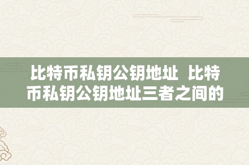 比特币私钥公钥地址 比特币私钥公钥地址三者之间的关系