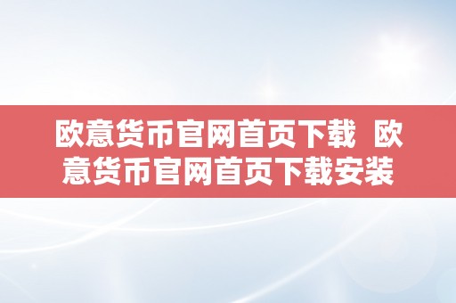 欧意货币(EuroMoney)是一款全球**的数字货币,其官方网站提供了欧意货币官网首页的下载服务,如果您希望体验欧意货币的**功能和服务,请按照以下步骤完成欧意货币官网首页的下载和安装。
