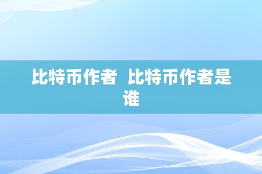 比特币作者 比特币作者是谁