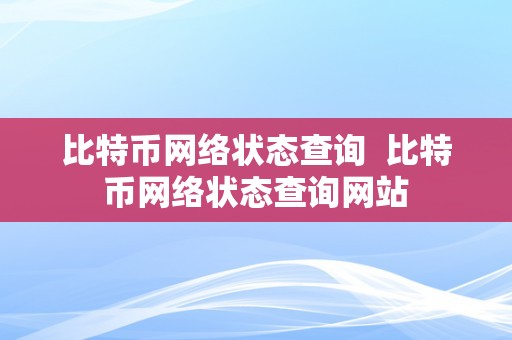 比特币网络状态查询 比特币网络状态查询网站