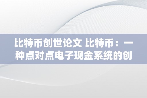 比特币创世论文 比特币:一种点对点电子现金系统的创世论文及写作方法 比特币创世论文怎么写