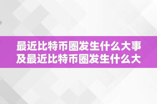 最近比特币圈发生什么大事及最近比特币圈发生什么大事了
