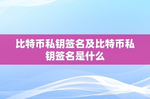 比特币私钥签名及比特币私钥签名是什么