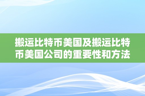 搬运比特币美国及搬运比特币美国公司的重要性和方法