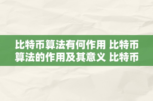 比特币算法有何作用 比特币算法的作用及其意义 比特币算法有何作用和意义