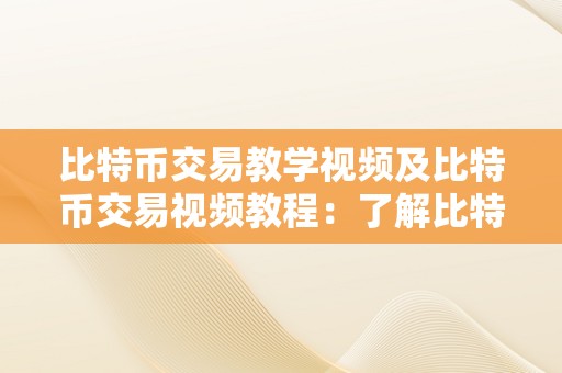 比特币交易教学视频及比特币交易视频教程:了解比特币交易的基本知识和技巧