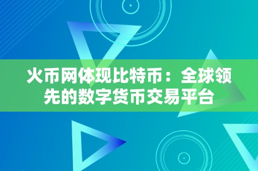 火币网体现比特币:全球领先的数字货币交易平台