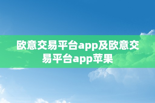 欧意交易平台app和欧意交易平台app苹果是一款功能强大、安全可靠的交易应用程序,无论您是想进行股票交易、外汇交易还是加密货币交易,这些应用程序都能满足您的需求,下载并安装欧意交易平台app苹果,开始您的交易之旅吧!