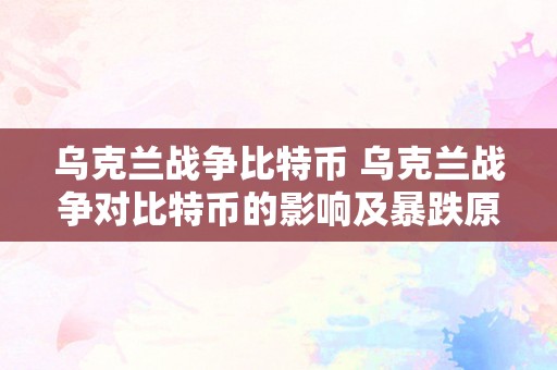 乌克兰战争比特币 乌克兰战争对比特币的影响及暴跌原因 乌克兰战争比特币暴跌